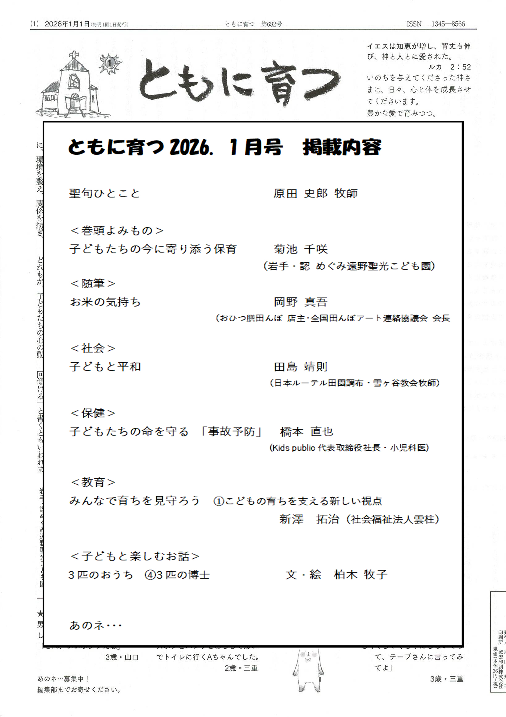 月刊 キリスト教保育‘26年 1月号 月刊 ともに育つ ‘26年 1月号 おはなしのこみち 冬から春 おはなしのこみち 秋から冬 おはなしのこみち 夏 おはなしのこみち 春 New! キリスト教保育指針[2024年版] キリスト教保育ハンドブック キリスト教保育50の質問 ―見えないものに目を注ぐ― 幼児さんびか 幼児さんびか(普及版) 幼児さんびかⅡ 幼児さんびかⅡ(普及版) こどものうた おひさまおはよう クリスマスのうた 新 子どもと行事 子どもと行事 第4回 キリスト教保育アンケート報告 ― 2013・2014調査に基づいて― キリスト教保育アンケート報告 -現状と課題― キリスト教保育者の現状と課題 -意識調査に基づく―